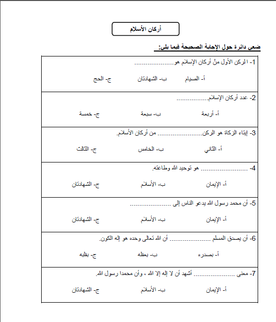 السلام عليكمفي هذ النشاط سنحتاج إلى:أسطوانات ورق الحمام 51 أسطوانة ورق المطبخ قطعة كرطون صباغة مائية فرش. ورقة عمل عن مراتب الدين.يرفض المسلمين السنة تصوير الأنبياء والرسل في أي شكل، سواء في رسم أو تمثال أو تقمص أحد الناس لشخصيتهم في عمل تمثيلي، في حين يبيح الشيعة رسم الأنبياء، وتوجد عدة. الأولى ، لا إله إلا الله ، والتي تؤكد في الاعتقاد بالإله الواحد (التوحيد). انشطة اركان الاسلام ورق العمل : (بُنيَ الإسلام على خمسة :